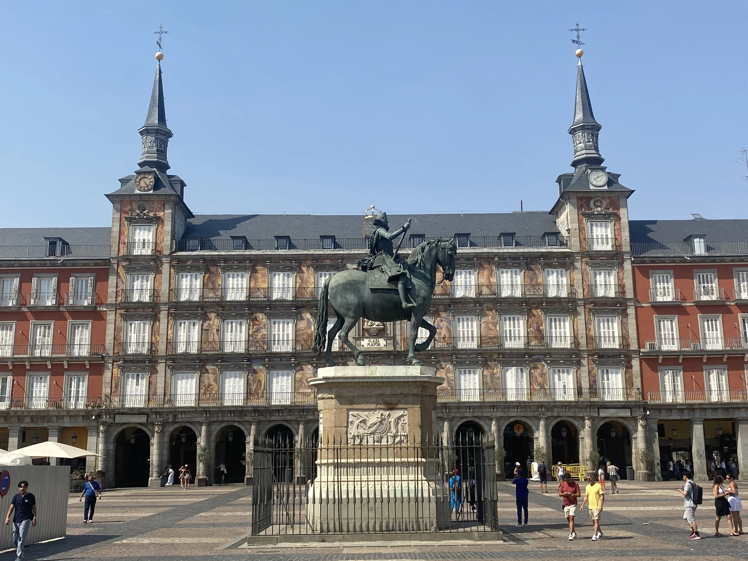 At the center of Plaza Mayor stands the equestrian statue of King Philip III, erected in 1616. The statue, crafted by Italian sculptors Giambologna and Pietro Tacca, serves as a reminder of the king under whose rule the square flourished. Surrounded by open space, the statue provides a focal point that enhances the sense of history and grandeur within the plaza.